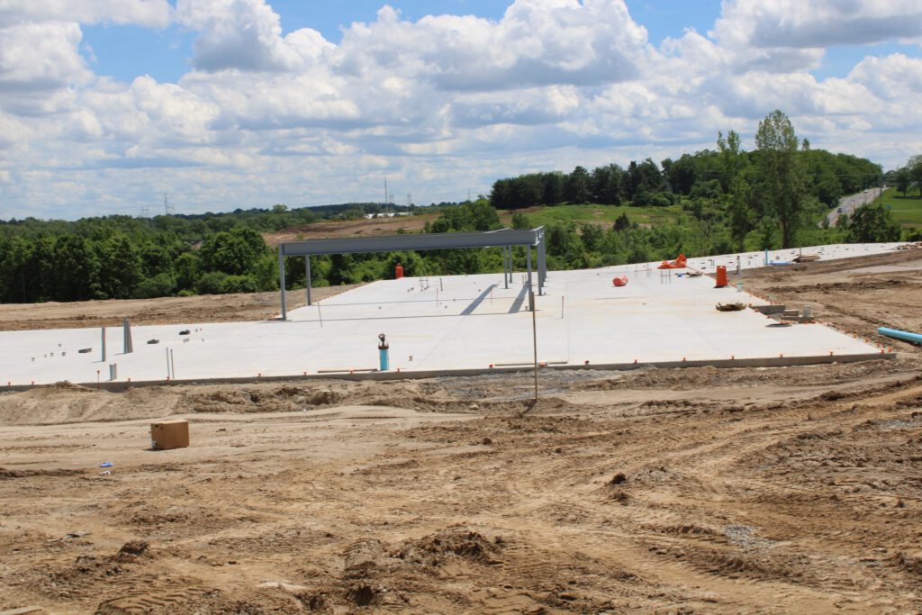 Completed all curbs, sidewalks, parking areas, and roadways — including road widening for improved traffic flow in and out of the facility.
